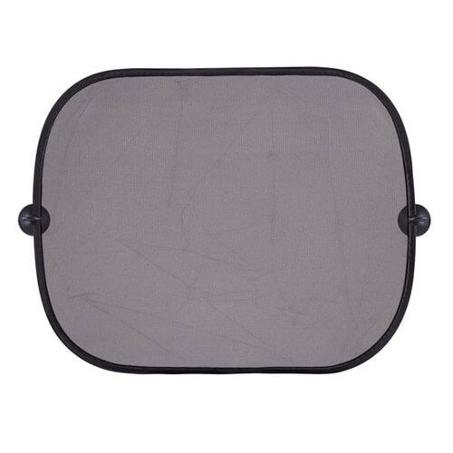 Set de 2 parasoles color negro de tela con filtro UV para ventanillas de automóvil y aro de aluminio.