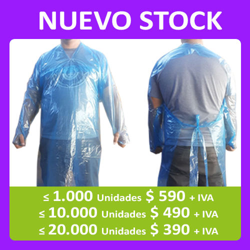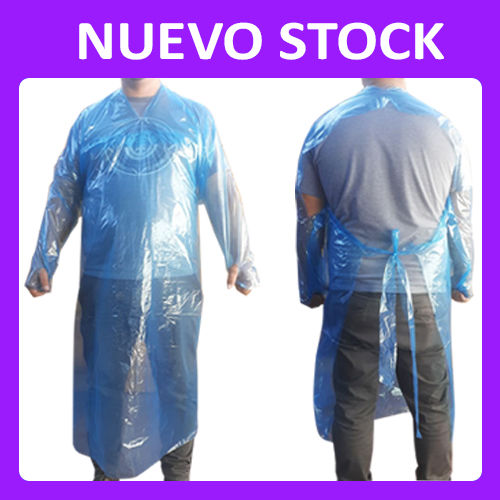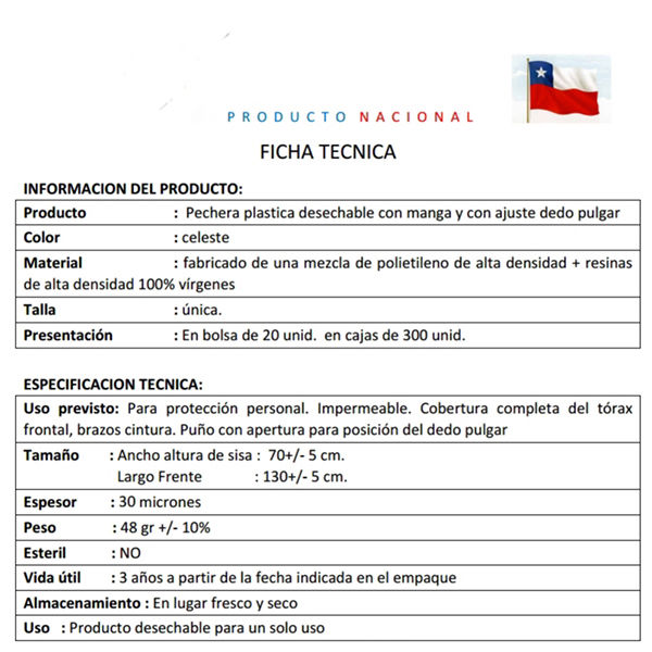 Pechera de Polietileno desechable con manga y con ajuste dedo pulgar en color Celeste.