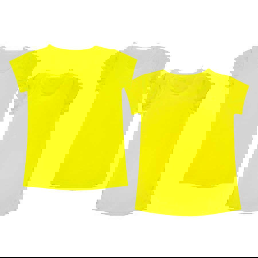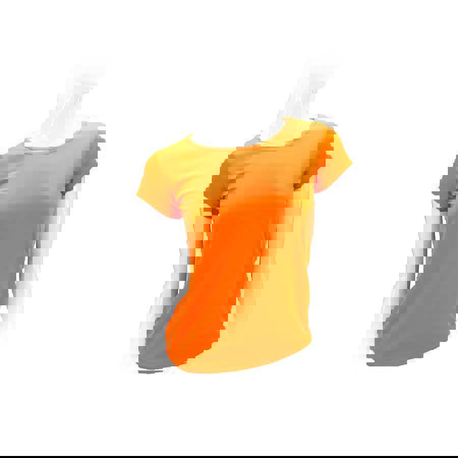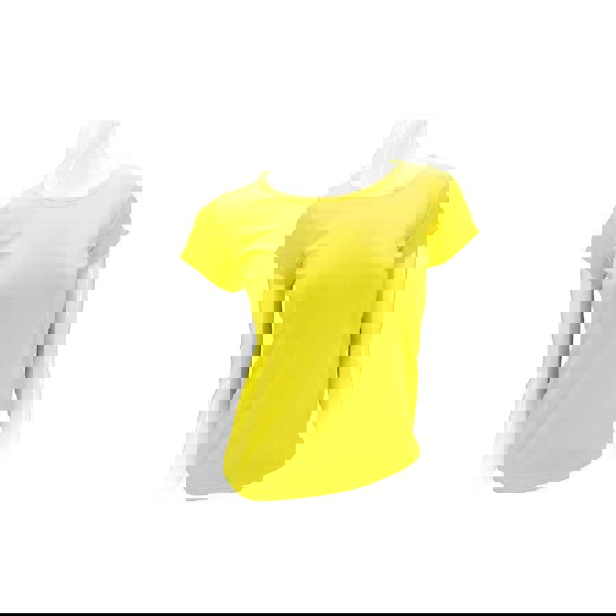 Polera 100% POLIÉSTER de 150gr/m2, para MUJER. Cuello redondo, manga corta. Presentación individual en bolsa de polipropileno transparente.