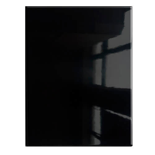 Madera enchape color negro brillante con parte trasera en terciopelo color negro.