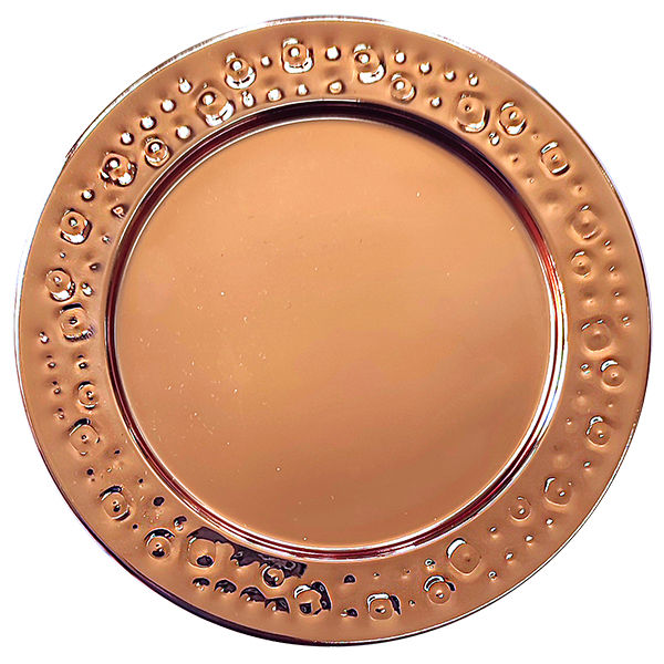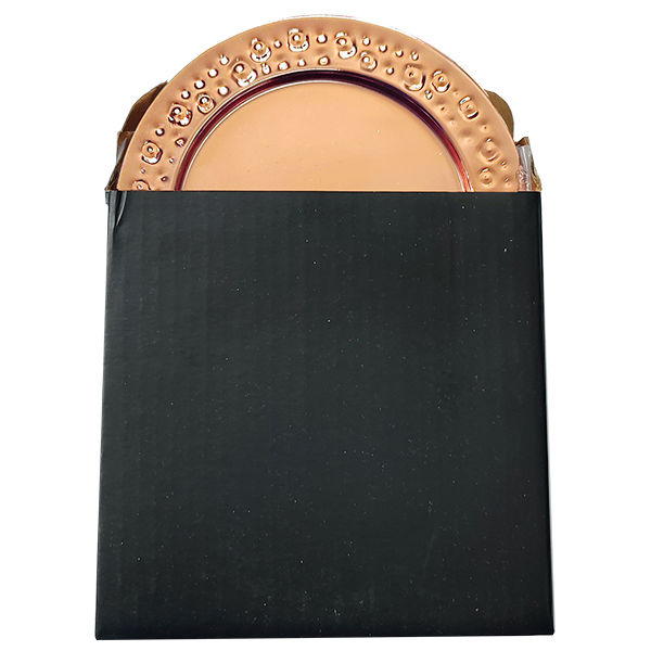 Set de 2 posavasos de acero inoxidable electro-plateado en cobre con puntos martillados. Presentación en caja de regalo negra.