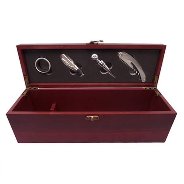 Set de vino en caja de madera color Caoba que incluye:
