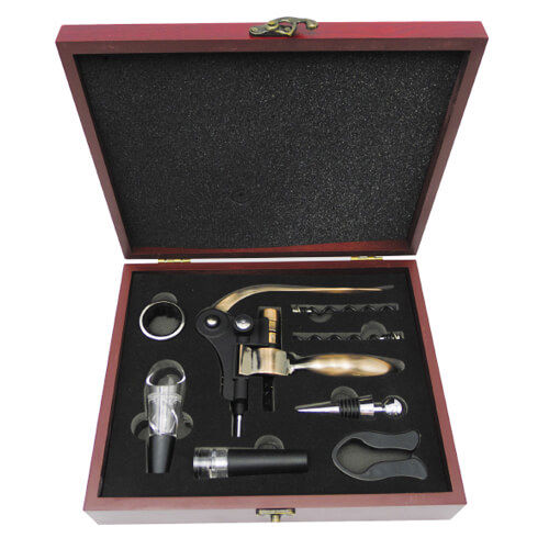Set de Vino Deluxe en caja de madera color Caoba que incluye: