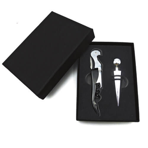 Set de vino en caja de cartón duro negro que incluye: