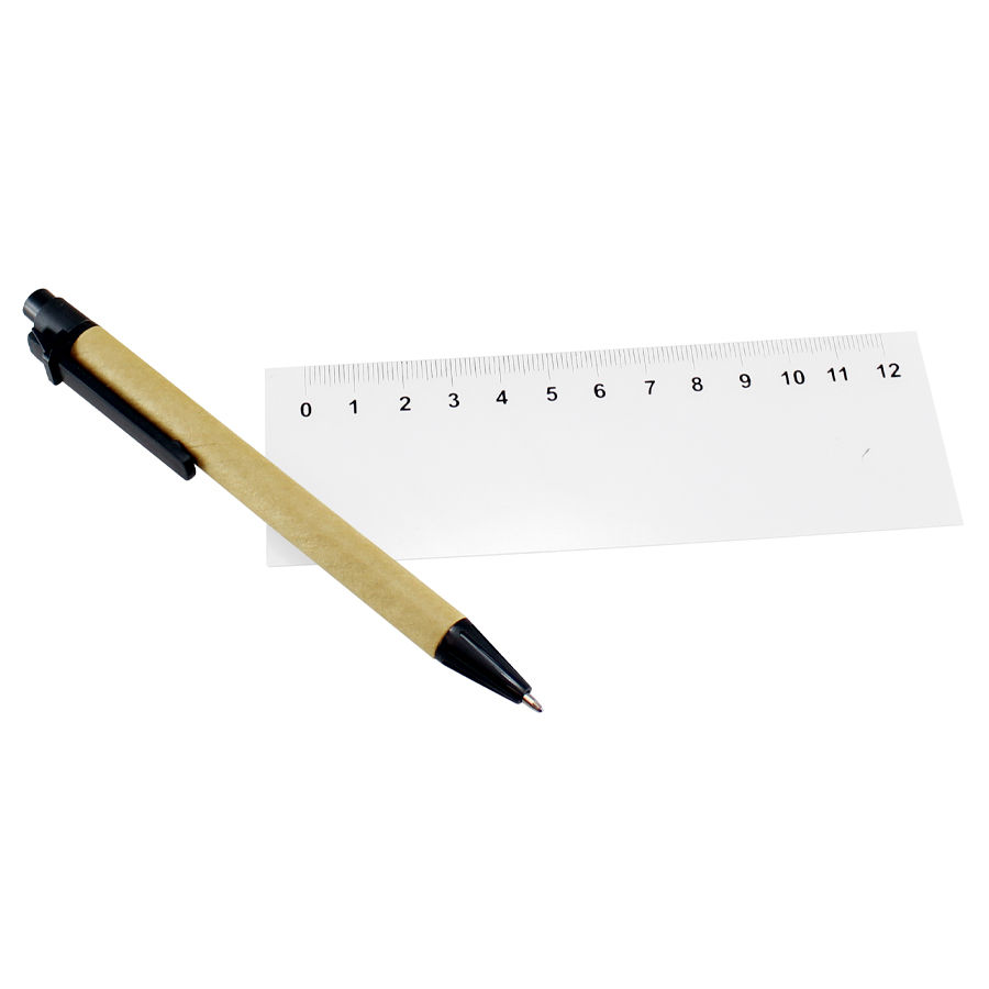 Memo Set Ecológico con Bolígrafo Ecológico escritura negra, Regla 12 cm, notas y banderitas adhesivas. Incluye 300 notas adhesivas cuadradas + 750 banderitas adhesivas de colores.