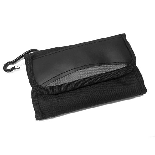 Estuche con cierre de velcro y mosquetón.