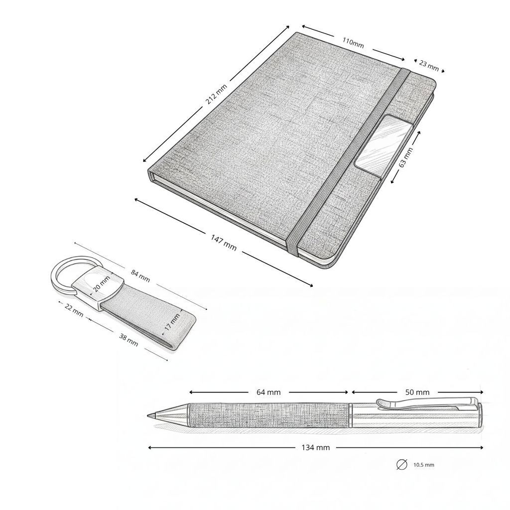 Set PARATY: Libreta de Notas, Bolígrafo y Llavero