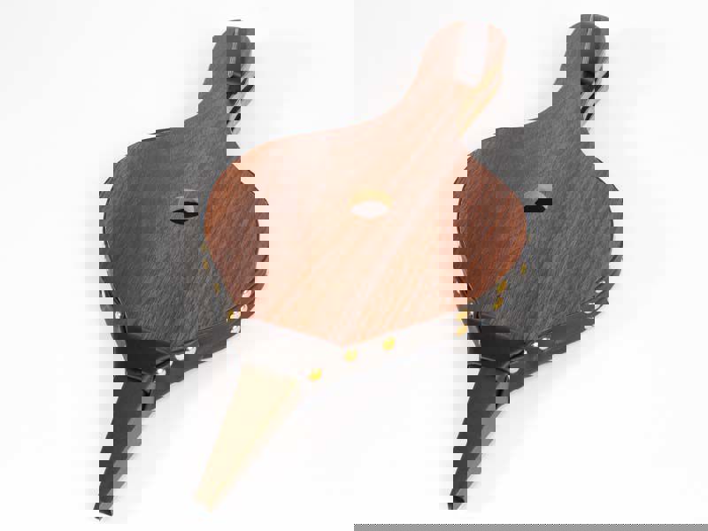 Soplador grande de aire tipo Acordeón, para chimeneas y parrillas. Superficie MDF, reforzado con cuero y tachas. Toma de aire posterior. Amplia superficie para logo.