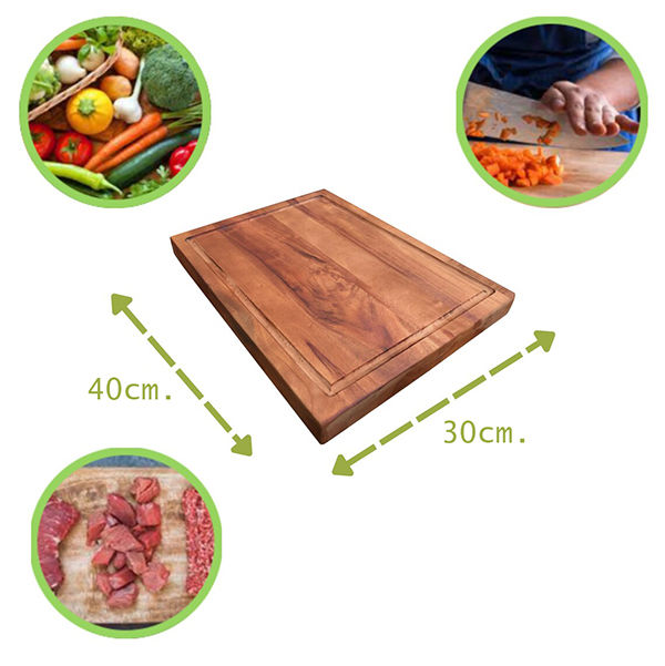 Tabla rectangular para picar carnes de madera Acacia.