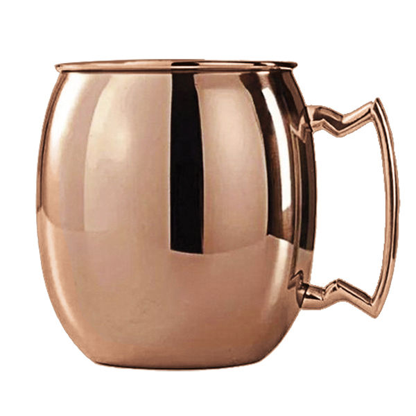 Mug de acero inoxidable electro plateado en cobre y asa de Zamak. Cobre en interior, color acero inoxidable en interior. Presentación en plástico burbuja dentro de caja kraft.