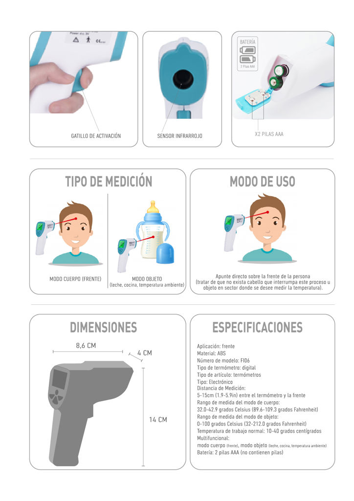 Dispositivo para medir la temperatura a una distancia entre 5 – 10 cm.