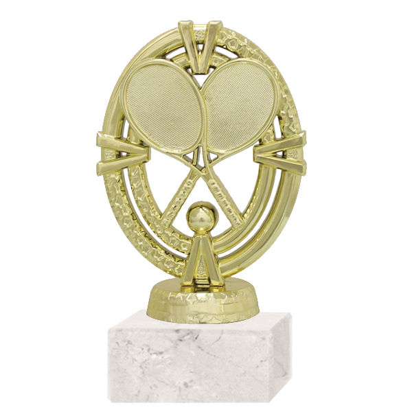 Trofeo plástico de color oro figura Ténis. Incluye base de mármol blanca.
