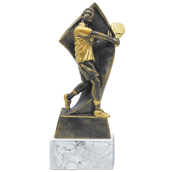 Trofeo de Resina con figura de tenis/padel. Incluye base de marmol. Presentación en caja de cartón con interior de aislapol.