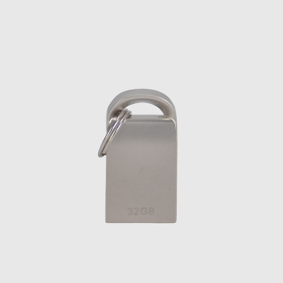 Mini-Pendrive «Lock» USB 2.0 con 32GB de memoria. Incluye mini-argolla redonda para llavero. Presentación en práctico blister de cartón reciclado con ranura para ganchera, y estuche plástico translúcido para remover el pendrive directamente.