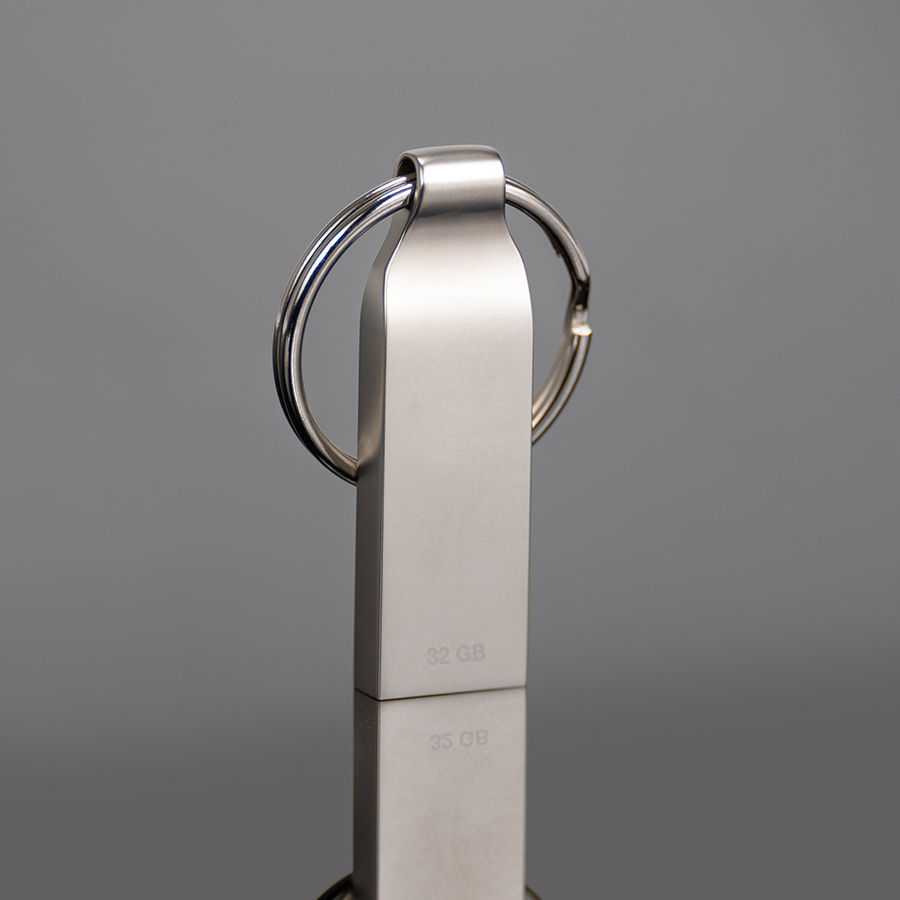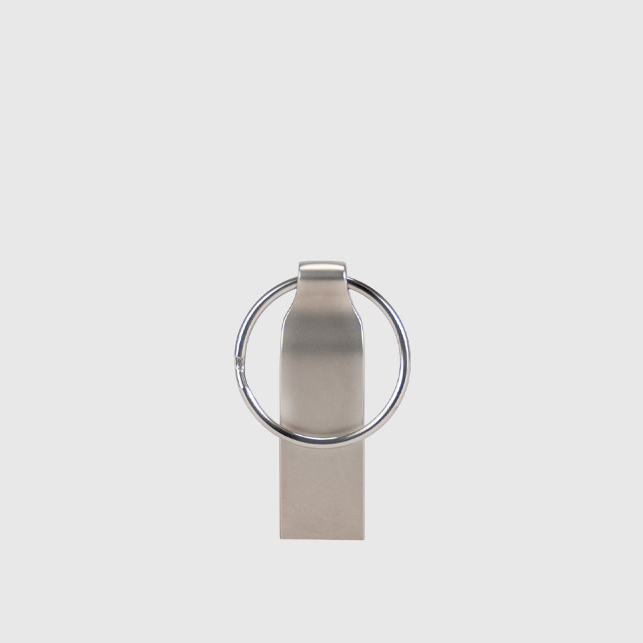 Pendrive «Bot» USB 2.0 con 32GB de memoria. Incluye argolla redonda para llavero. Presentación en práctico blister de cartón reciclado con ranura para ganchera, y estuche plástico translúcido para remover el pendrive directamente.