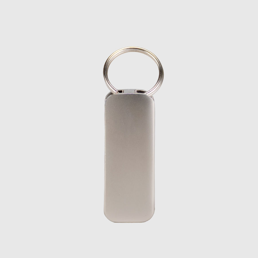 Mini-Pendrive «Swivel» USB 3.0 con 16GB de memoria, cuerpo giratorio de Acero inoxidable. Incluye argolla redonda para llavero. Presentación en práctico blister de cartón reciclado con ranura para ganchera, y estuche plástico translúcido para remover el pendrive directamente.
