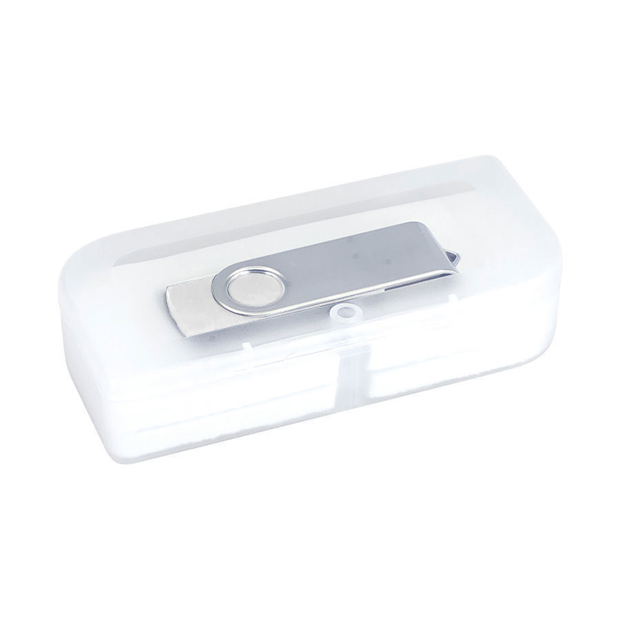 USB Pendrive 2.0 con 32GB de memoria, con carcasa metálica de giro. Presentación en caja de PVC translúcido.