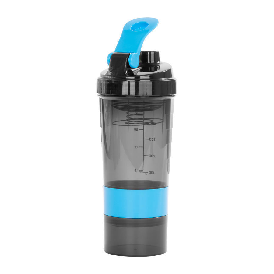 Este es el vaso shaker más completo del mercado, que no puede faltar en tu visita al gym o tus salidas al aire libre, deportes o entrenamientos. Vaso plástico Gym para batidos proteína «SHAKE». Contiene 4 compartimentos, el superior para líquidos, y los 2 de abajo para polvos, proteínas, etc. Además, contiene un cuarto compartimento con 3 divisiones, ideal para guardar píldoras u optros accesorios pequeños. Boquilla superior con tapa. En su parte superior interior, contiene espiral de acero inoxidable, para evitar el pegado del polvo a las paredes del vaso.
