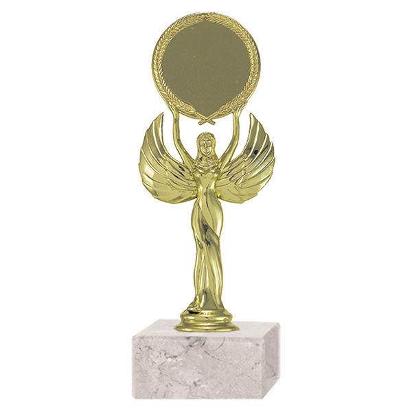 Trofeo Plástico con base de mármol blanca. Portasello para aplicación de domo o sello. Incluye base de mármol blanca.